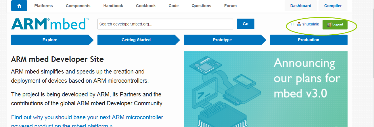 点击进入MBED的官网 https://developer.mbed.org/, 如下图: