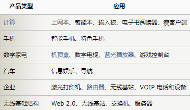 虽然Cortex-A处理器正朝着提供完全的Internet体验的方向发展,但其应用也很广泛,包括: