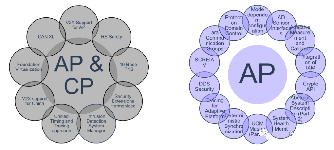 自适应Autosar路线图,版本是不能混用的,比如你买了R19-03的部分模块,剩下的模块想用R19-11版是不可能的。Adaptive AUTOSAR中,主要包含两种Application: