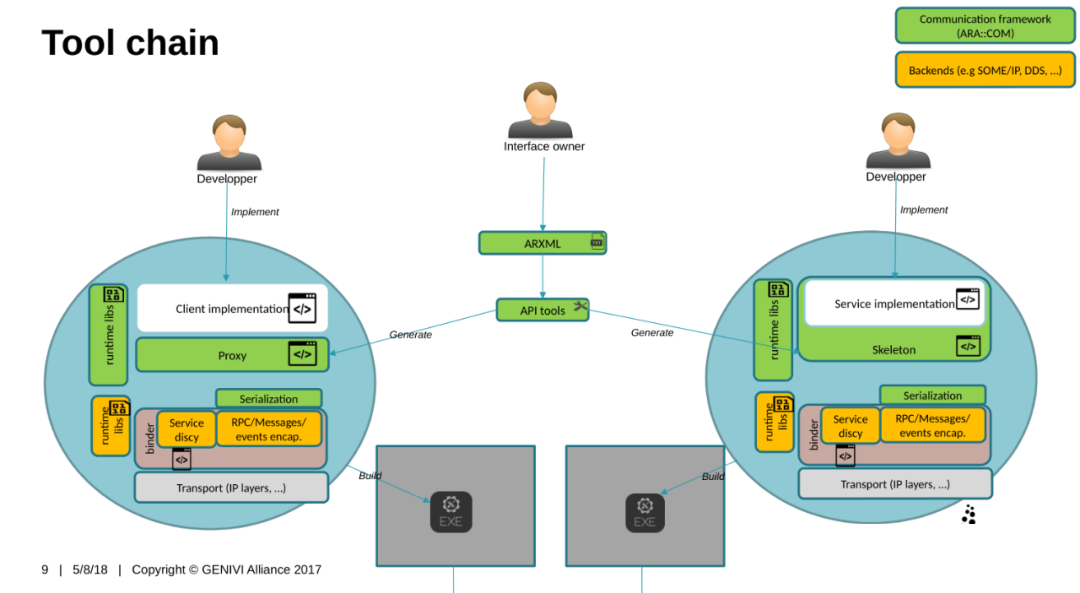Application-Level的Application会生成源代码和目标代码,这部分与 “用户”有关。Platform-Level的Application会生成目标代码,这部分与 "工具供应商" 有关。不是所有工具供应商都能提供完整的Platform-Level的Application,通常只能提供部分,某些领域,标准未确定,如V2X,工具供应商几乎完全无能为力。