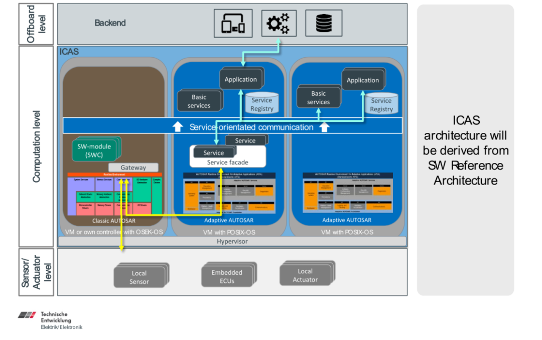 先进E/E架构实际就是车载以太网和自适应Autosar的具体应用。无论是软件定义汽车还是服务架构导向,其最核心的支柱也是车载以太网和自适应Autosar。