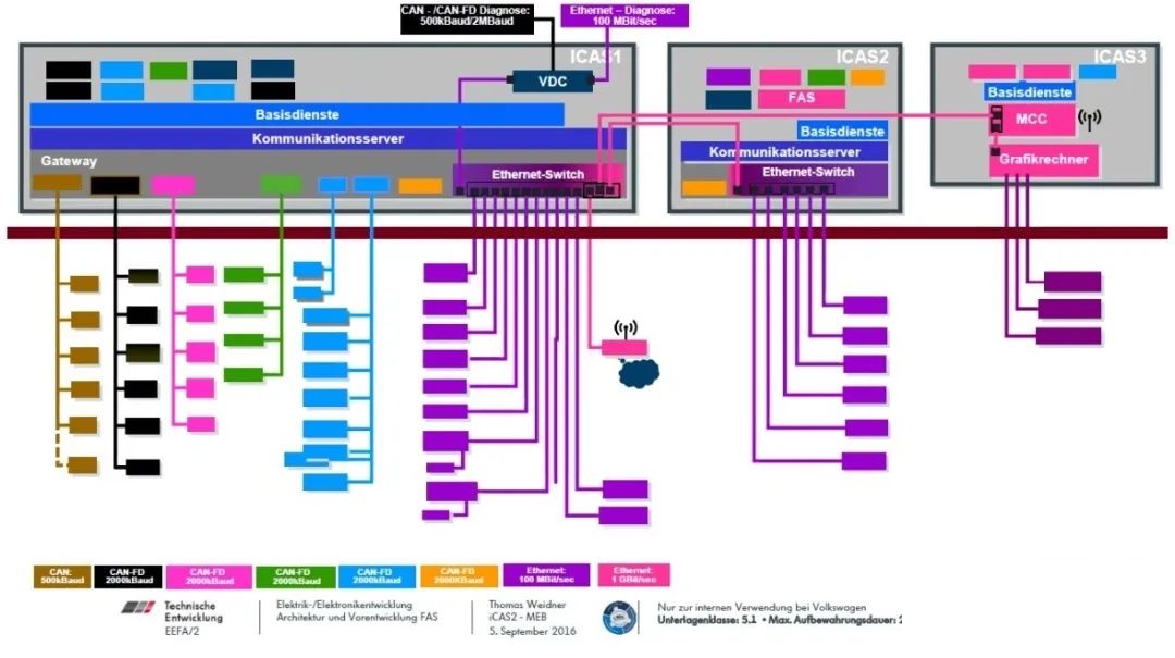 Zonal架构可算是SOA架构的典型代表,可以说SOA架构离不开TSN。ADAS/座舱/车身三个运算单元类似大众MEB里的ICAS。