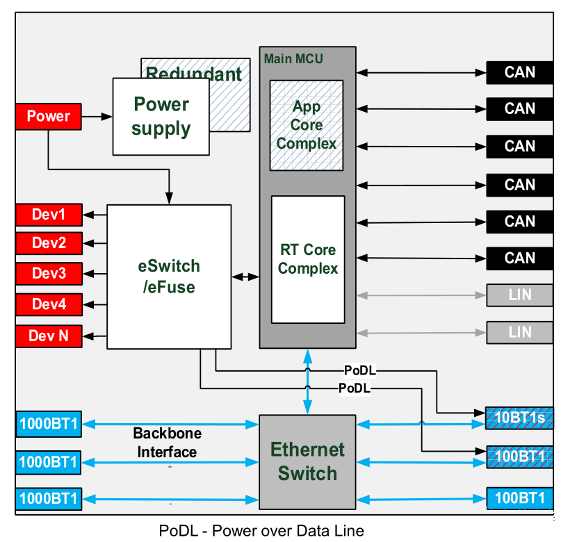 通常交换器IC和MCU会集成低端(如CAN网络)的物理层,高端(如以太、Flexray网络)物理层一般都是单独的芯片。