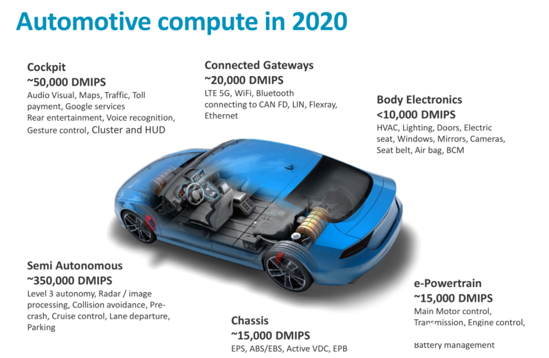 上图为ARM在2017年投资者大会上发布的内容,ARM预计2020年顶级座舱的算力是50K DMIPS