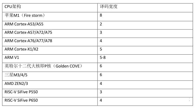 影响CPU算力最关键的参数是Decode Wide译码宽度,译码宽度可简单等同于每周期指令数量即IPC,即每个周期完成多少个指令。