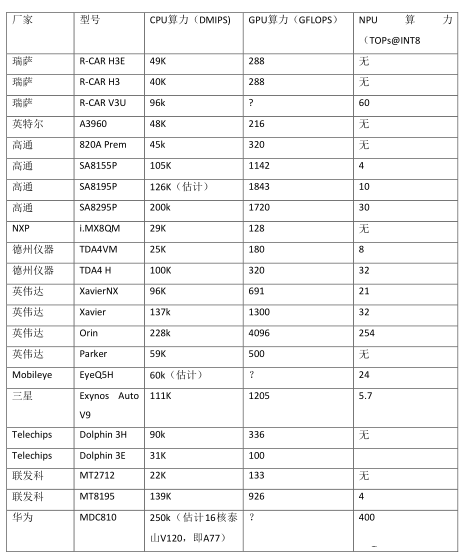 目前与未来常见座舱与智能驾驶SoC算力统计