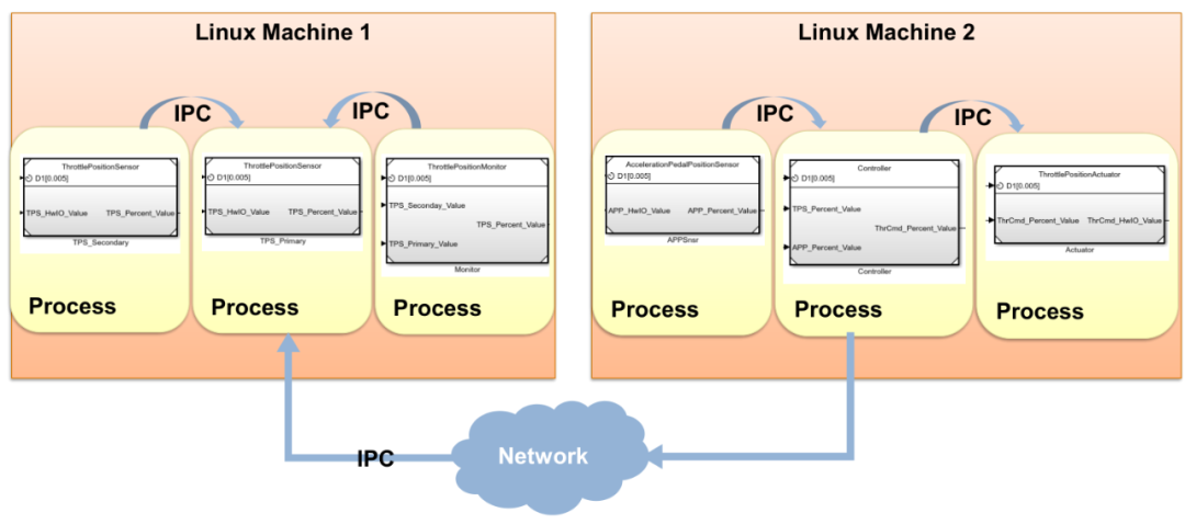 在硬件上,可以有一台或多台机器,并且只有一个自适应Autosar服务在机器上运行。这种“硬件”上一般会有一个芯片,并承载着一台或多台机器。然而,如果自适应Autosar服务允许的话,多个芯片也可能形成一台机器。