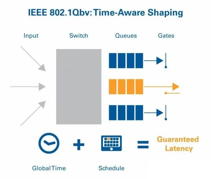 低延迟的核心标准是IEEE802.1Qbv时间感知队列。