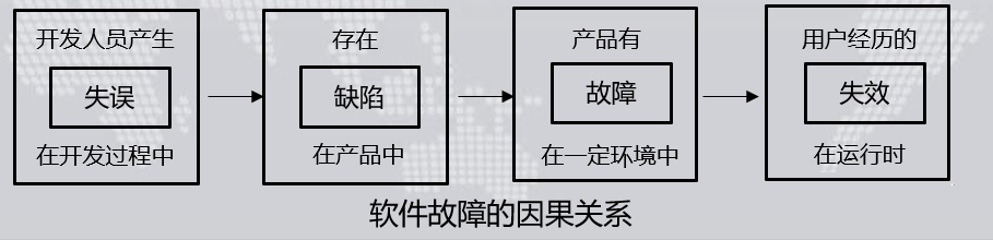软件可靠性中常用失误、缺陷、故障和失效来描述故障的因果关系。那我们首先得搞懂这几个概念。