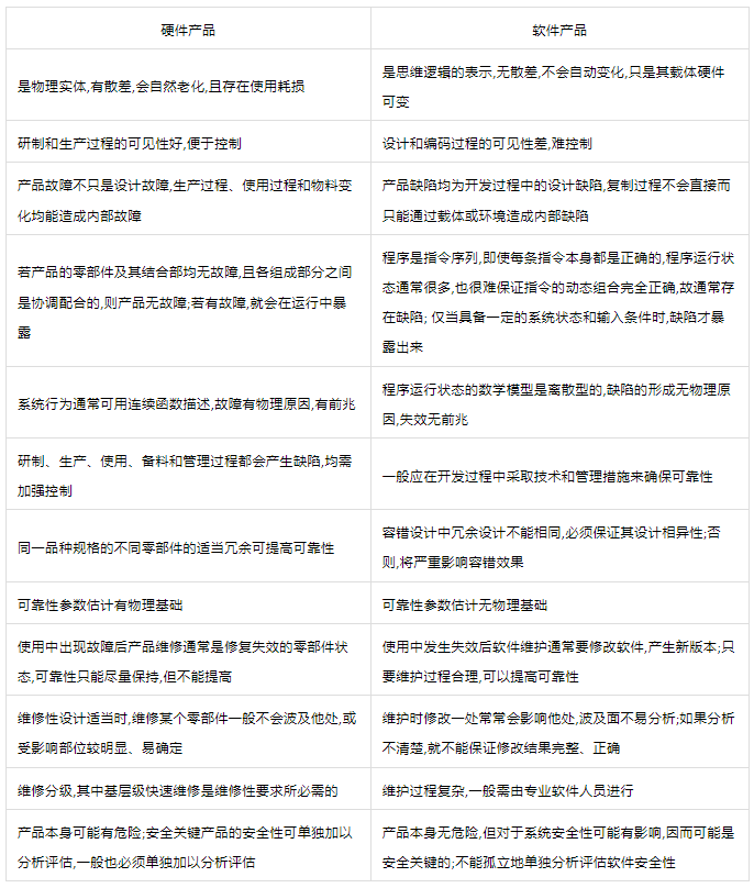 软件可靠性和硬件可靠性的区别如下,非常清晰: