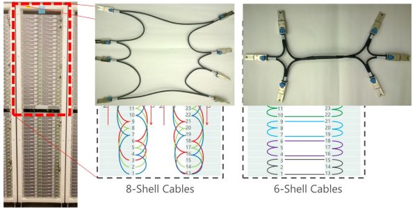 像超级计算机一样的部署方式,意味着有专门的一个机柜全是上图这种装了 24 块 FPGA 的服务器(下图左)。