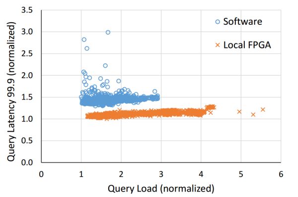 FPGA 不仅降低了 Bing 搜索的延迟,还显著提高了延迟的稳定性。来源:[4]