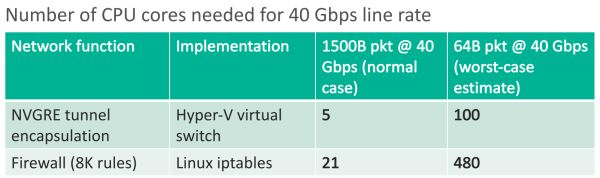 网络隧道协议、防火墙处理 40 Gbps 需要的 CPU 核数。来源:[5]