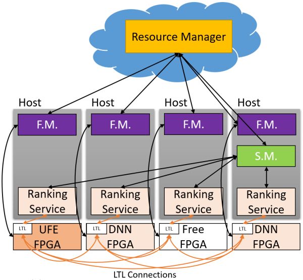 Azure 服务器部署 FPGA 的架构。来源:[6]
