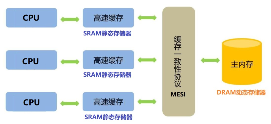由于现在计算机中的 CPU 都是多核的,并且缓存数据是由多核共享的,所以就有了类似 MESI 这样的协议来维护一个状态机保证数据在多核之间是一致的。