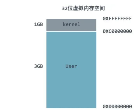 想一下虚拟内存空间结构,整个 4 GB 的空间,操作系统用了 1 GB,从地址 0XC0000000
