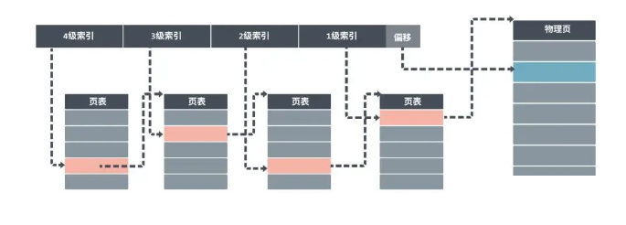 Linux 在 2.6.10 中引入了四层的页表辅助虚拟地址的转换: