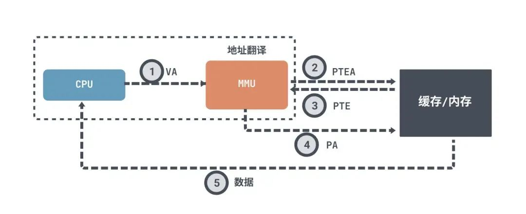 一次简单的数据获取需要多次经过多次与内存的交互,如果是 4 级页表,那么就需要访问 4 次内存才能获取到对应的物理页号。如果是缺页,还需要有一个