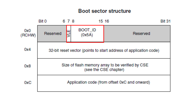 如下图示,CPU上电后程序按地址顺序,检查BootSector的有效性,如果BOOT_ID合法则从指定的地址开始执行,否则检查下一个BootSector。