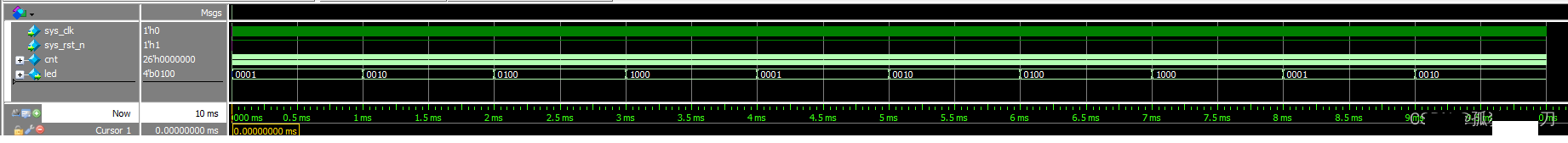 再1ms后led的值变成了0100,代表此时仅LED3亮,其他LED熄灭