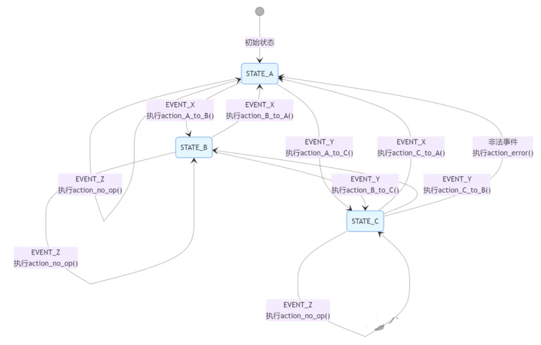 [EVENT_Z] = { .next_state = STATE_C, .action