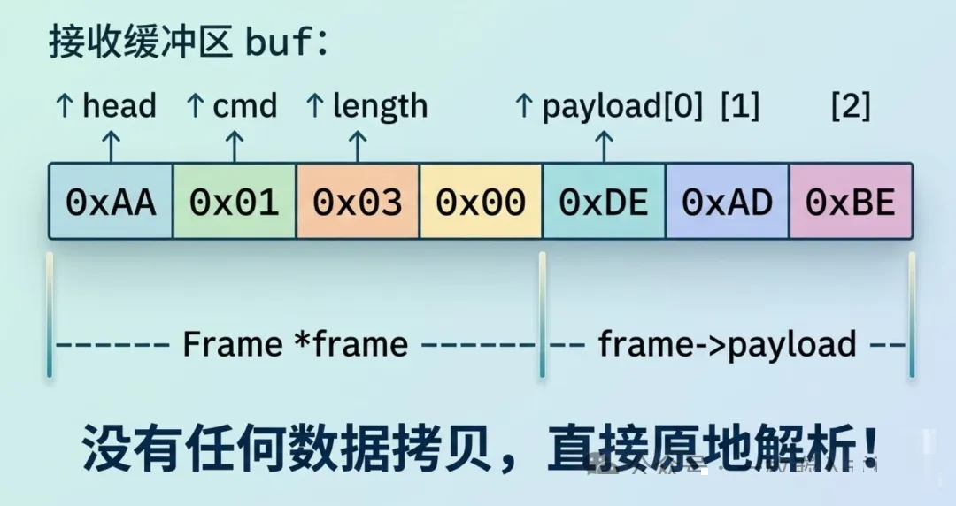 void on_data_received(uint8_t *buf, uint16_t len) { Frame *frame = (Frame *)buf; // 零拷贝,直接映射