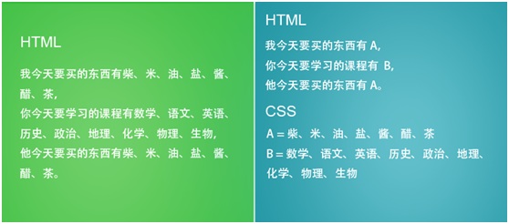 有没有发现如果一旦形容的事情过多,想要把事情描述清楚的时候,我们不得不重复大量的信息?页面语言也是一样,在这种情况下显得杂乱无章,非常难以理出头绪。通过将控制显示效果的语言集成到CSS里,我们不但可以保证页面语言主体部分的简洁,而且可以非常方便的复用各种语言集合。