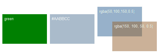 2. 如果透明度不为 1.0,也就是带透明,颜色值格式可以使用 rgba(r, g, b, a),其中 r、g、b、a 分别为 Red、Green、Blue 分量和透明度。透明度的值为 0 至 1.0 之间的一个数值。