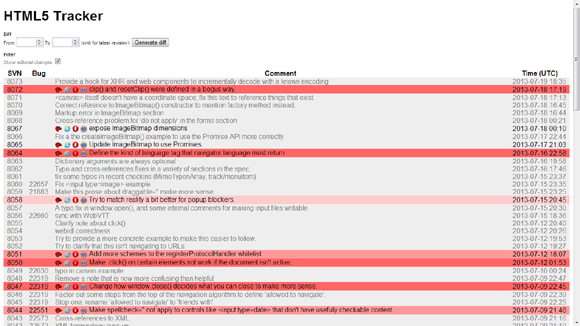 网站开发者了解最新的技术是必要的,通过使用该工具可以跟踪HTML5最新修订信息。