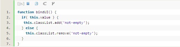 定义这个bindUI函数,操作流程如下,如果需要输入一个值,在这可以添加一个被命为.not-empty的字段。'not-empty'意味着有个占位符。