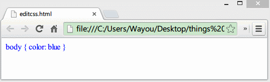 <!DOCTYPE html> <html> <body> <style style="display:block" contentEditable> body { color: blue } </style> </body> </html> |