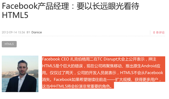 原文中,还多次提到了Facebook,弃用HTML5的事件,我搜了一下发现这篇报道:
