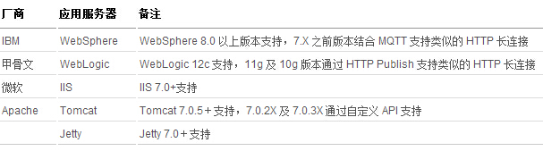的支持(详见JSR356 WebSocket API 规范),以下列举了部分常见的商用及开源应用服务器对