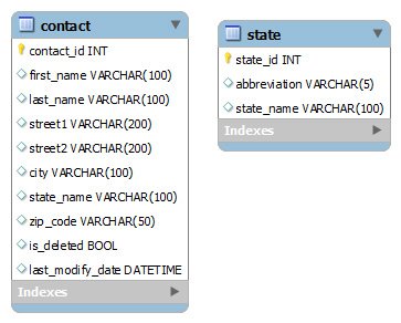 数据模型包括两个数据实体:联系人和状态,如 图 2 所示。联系人表包含实际的联系人数据;状态表包含状态选择列表的字典值。