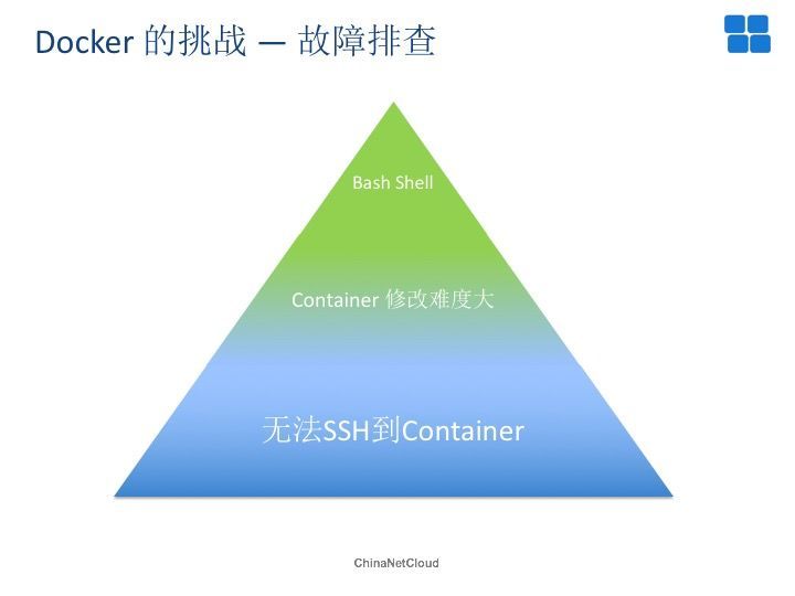 ÅÅÕÏÔø¾ÊÇDockerÃæÁÙµÄÒ»¸öÎÊÌ⣬ÒòΪÎÒÃÇÎÞ·¨SSHµ½container£¬ÐèÒªÔÚÄÚ²¿Æô¶¯serviceʹÓÃconsoleµÇ¼£¬²¢ÇÒÎÒÃǺÜÄѶÔcontainer½øÐÐÐ޸ĺͲâÊÔÒòΪËûµÄ²¿Êð¶¼ÊÇÔÚimageÉú³É½×¶ÎÍê³ÉµÄ¡£ºóÀ´Dockerа汾ÓÐÁËBash