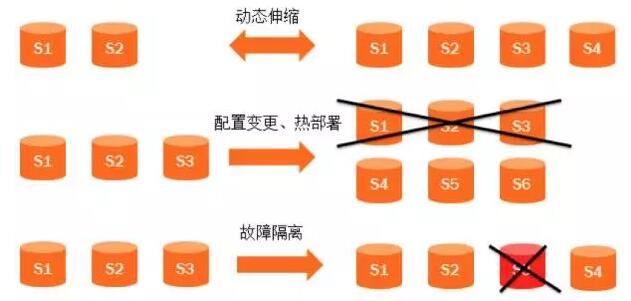 弹性伸缩提供包括动态伸缩,热部署,故障隔离三层含义。弹性示意(图十四)