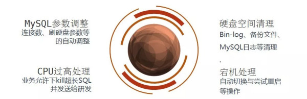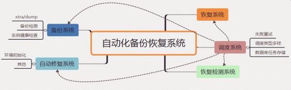 备份系统每次备份时都会进行实例健康状态检查、备份运行状态检查等,防止对无效的数据库实例进行备份;恢复系统主要是在需要进行数据恢复、弹性扩容等等需要从备份文件恢复成运行的数据库实例时使用,能够让DBA通过简单地操作即可完成数据的恢复;恢复检测在调度系统的指挥下自动对备份文件可用性进行检测,来帮助DBA及时发现不可用的备份文件;备份失败有些是能够通过失败自动重试来解决,但有一部分是重试所不能解决的,需要进行相应修复,因此开发了自动修复系统来自动修复因为环境等问题引起的备份失败。