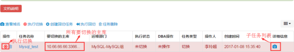 切换成功的任务会显示回切按钮,DBA可以执行回切,并查看回切的具体信息。