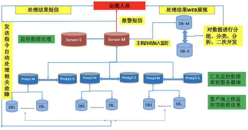 京东的分布式监控系统采用被动模式,server端和proxy端均做高可用,防止单点故障。以下是整体架构和流程图: