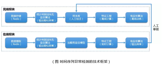 1.ÀëÏß°å¿é£¬Í³¼ÆÅбðºÍÎ޼ලËã·¨Êä³öÒÉËÆÒì³££¬È»ºóÈ˹¤½øÐÐÉóºË£¬¼ÓÈëÕý¸ºÑù±¾¿â£¬Í¨¹ýÌáȡʱ¼äÐòÁеÄÌØÕ÷£¬¼ÓÈëÓмලËã·¨½øÐÐÀëÏßѵÁ·²¢ÇÒÊä³öÄ£ÐÍ£»