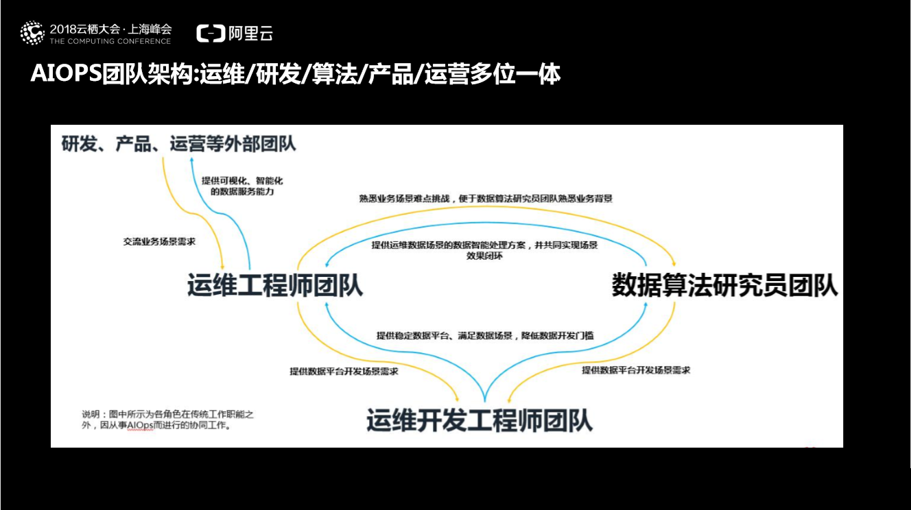 AIOps的搭建同样离不开好的团队,下图来自于《企业级AIOps实施建议》白皮书中AIOps团队的构建建议。在AIOps的搭建过程中,只有将算法与开发团队,运维团队形成良好的互动交流,才能更为高效的完成项目的搭建与开发。阿里巴巴GOC团队正是这样一个优秀的运维团队,并已积累了多个项目开发经验。下面将分享一些GOC团队利用AIOps解决实战问题的案例。