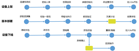 在一致性环境保障方面,织云给出的解决方案是,从运维对象的全生命周期开始纳管,在入库、初始化、变更、运营、下线等运维生命周期的不同阶段,提供标准的工具或流程来完成该阶段需要的运维操作。同时,通过控制