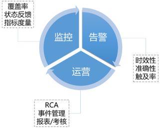 告警——时效性、准确性、触及率。业务越来越复杂,层次越来越多,每一个监控点都会产生数据指标、状态异常,会收到越来越多的告警。未看到或者看到未处理都需要承担责任,因为收到的并非都是误告警。最重要还要有触及率,告警由谁发布与处理?