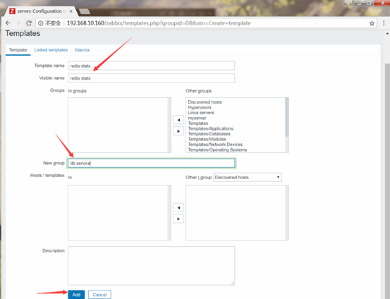 模板(template):用于快速定义被监控主机的预设条目集 合,通常包含了item、trigger、graph、screen、