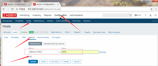 宏可以应用在item keys和descriptions、trigger名称和表达 式、主机接口IP/DNS及端口、discovery机制的SNMP协议