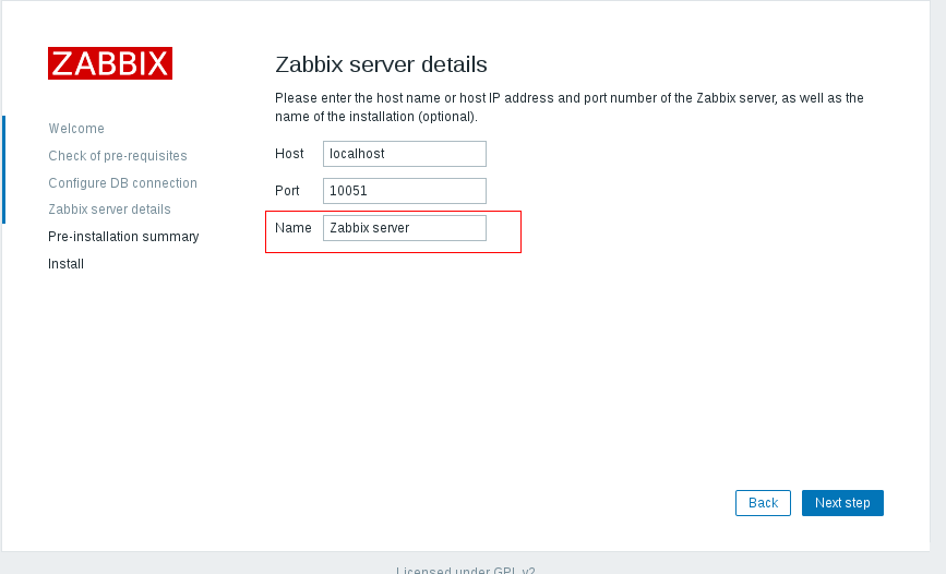 下一步填写zabbix信息