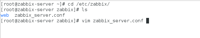 6、进入/etc/zabbix目录,编辑配置文件zabbix_server.conf