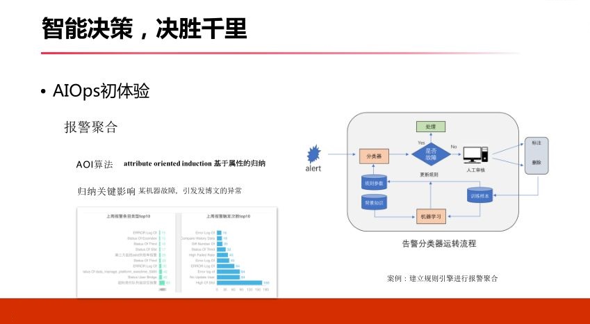 前段时间有一个段子说现在很多人工智能客服,后面雇了一帮人做人工客服的,人工智能客服实际上是智能客服,后面有一堆客服人员充当机器,所以我们要看清楚到底是否需要AI,有可能我们只需要一些规则就搞定,报警聚合或者根因分析有规则就搞定,不需要太高深算法,我们要认清自己所面临的具体问题。