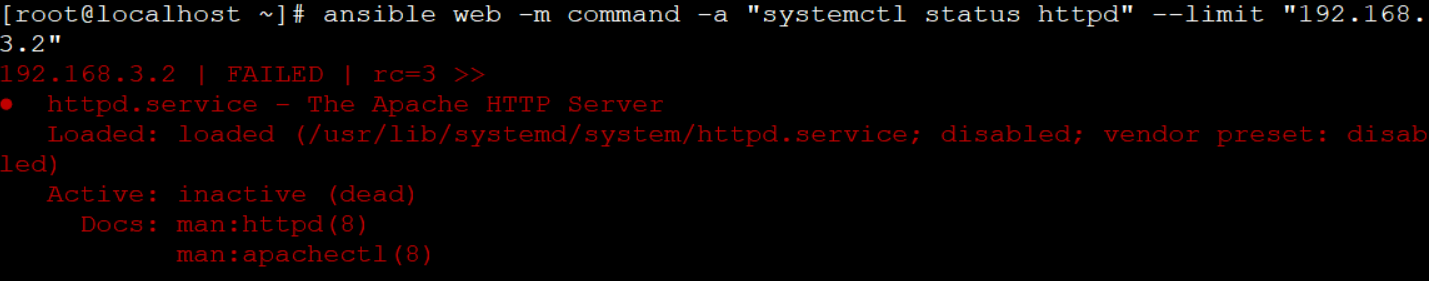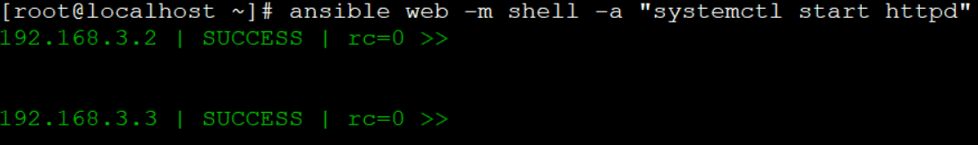 [root@ansible ~]# ansible web -m shell -a ¡°systemctl start httpd¡±