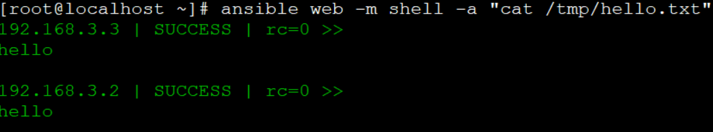 [root@ansible ~]# ansible web -m shell -a ¡°cat /tmp/ansible.txt¡±